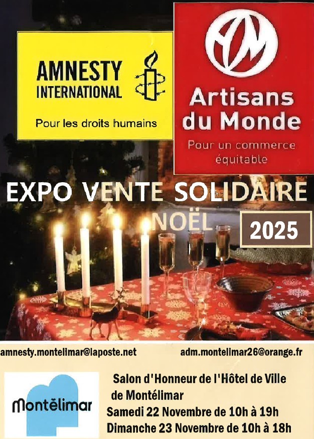 Stand d’Amnesty et Artisans du Monde a sélectionné des produits du commerce équitable : de l’artisanat (écharpes, instruments de musique, bagagerie, vaisselle, livres pour enfants…) et aussi des produits alimentaires comme le chocolat ou le café équitable !
