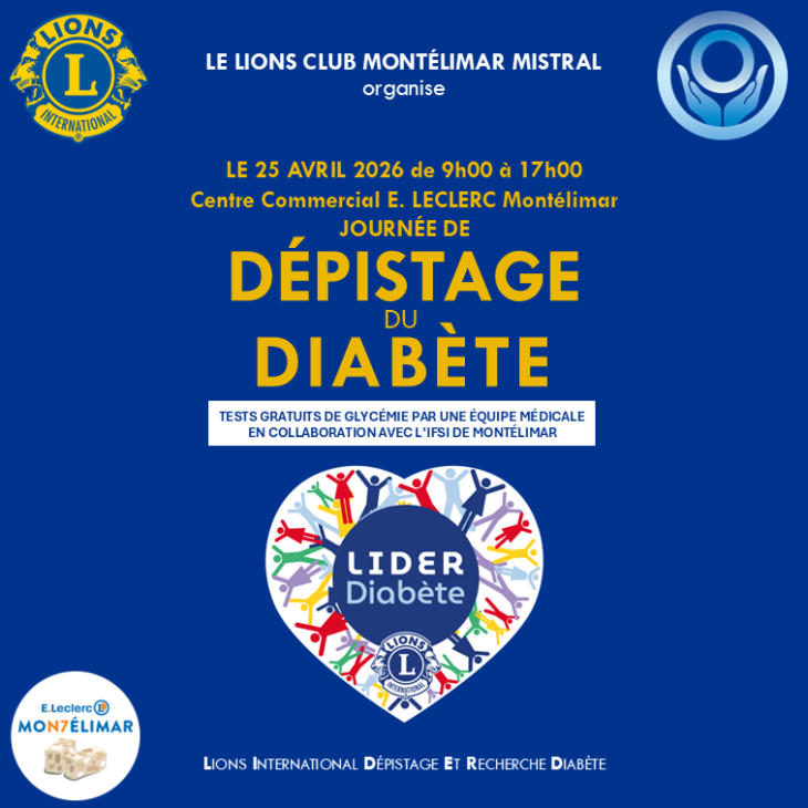 Le Lions Club Montélimar Mistral a le plaisir d’organiser une journée de dépistage du diabète ouverte à tous.
