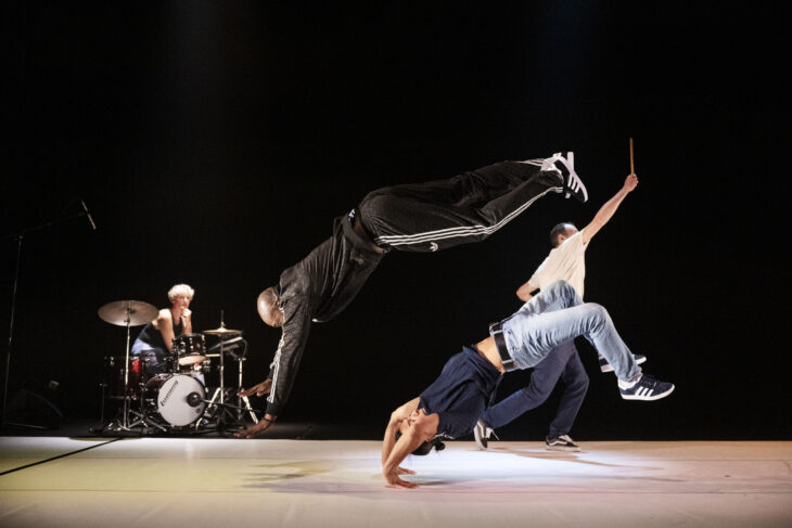 Dans cette pièce inspirée de faits réels, la danse est plus qu’une simple chorégraphie, elle est l’expression à part entière de l’histoire d’un jeune homme tiraillé entre sa passion et son besoin d’adrénaline. La vie intense de Njim se raconte en même temps que l’histoire de la danse hip hop, dans un déluge de figures acrobatiques. La musique live embarque définitivement le spectateur dans ce récit haletant.