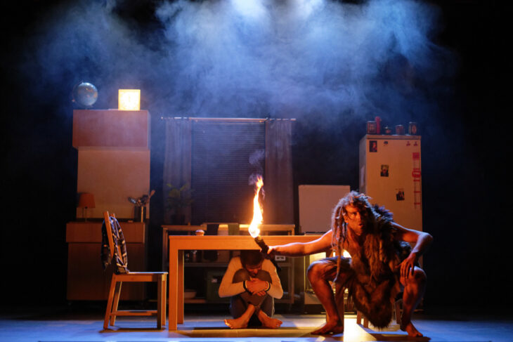 À travers cette rencontre improbable, Les Renards / Effet Mer vous invitent à un voyage épique à travers le Temps, à la rencontre de nos origines et de nos ancêtres. Une ode à la vie humaine et son évolution tantôt absurde, tantôt magique.